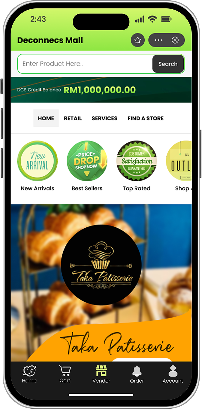 deConnecs is a vibrant all-in-one app featuring an e-commerce mall, real-time chat messaging, social lifestyle content, and exclusive deals through retail collaborations.
